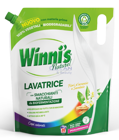 Дрехите, които носим, са нашата втора кожа: Winni's знае това и винаги се е грижил за тях, гарантирайки висока ефективност на почистване, като същевременно изцяло зачита природата. НОВИЯТ препарат за перална машина Winni's, благодарение на иновативната формула с естествени средства за отстраняване на петна от биоферментация.