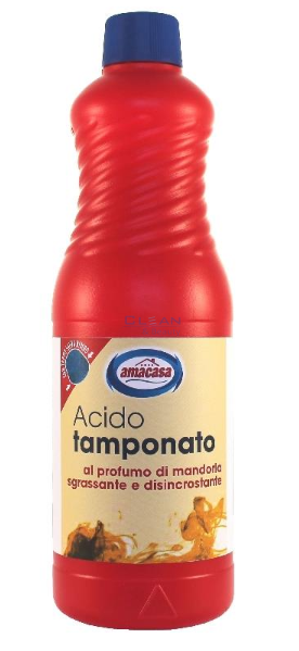 AMACASA ароматизирана солна киселина 1л е мощен почистващ препарат за баня и санитарни помещения, създаден за бързо и ефективно разтваряне на варовикови отлагания, ръжда и упорити замърсявания. Формулата с добавен аромат не само почиства, но и оставя свежест след употреба. Подходяща за почистване на фаянс, тоалетни чинии, подове, теракота и външни повърхности. Не е препоръчителна за чувствителни материали като мрамор, хром и алуминий. Произведена в Италия, продуктът е предпочитан в домакинства и професионални среди заради силното си действие и свеж аромат.