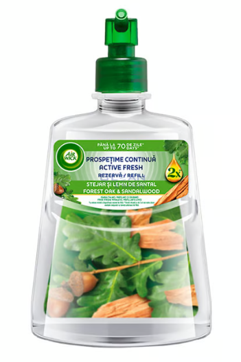 AIR WICK пълнител за автоматичен освежител с аромат Сандалово дърво създава уютна и изискана атмосфера във всяко помещение. Формулата е обогатена с натурални етерични масла, които помагат за ефективното неутрализиране на неприятни миризми и оставят дълготрайна свежест във въздуха. Топлите дървесни нотки на сандалово дърво придават усещане за комфорт и релакс, подходящо за хол, спалня, баня или офис пространство. Пълнителят е съвместим с автоматичните освежители Air Wick и осигурява равномерно разпръскване на аромата през целия ден. Продуктът е популярен в домакинствата в Европа заради своята дълготрайна ароматизация и удобство.