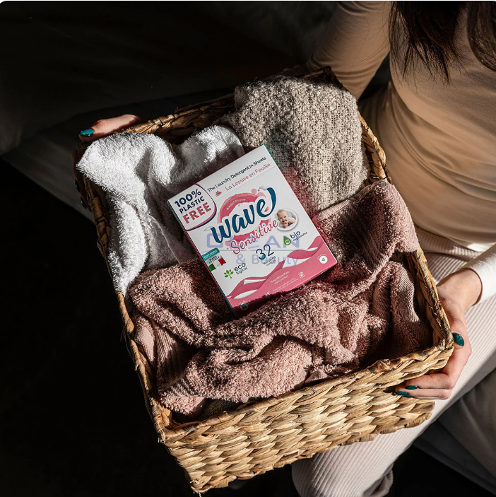 WAVE перилен прапарат на ленти 32пр Сензитив . са иновативни перилни листчета с нежна формула, създадени специално за чувствителна кожа и деликатни тъкани. Те се разтварят напълно във вода и осигуряват ефективно почистване без остатъци, като същевременно предпазват влакната и цветовете на дрехите. Подходящи за бели, цветни и деликатни дрехи, включително бебешко пране. Формулата е компактна, без излишна пластмаса и предпочитана в Западна Европа заради удобството и екологичния си характер. Ефективни при различни температури, включително ниски, което помага за пестене на енергия и запазване на тъканите.