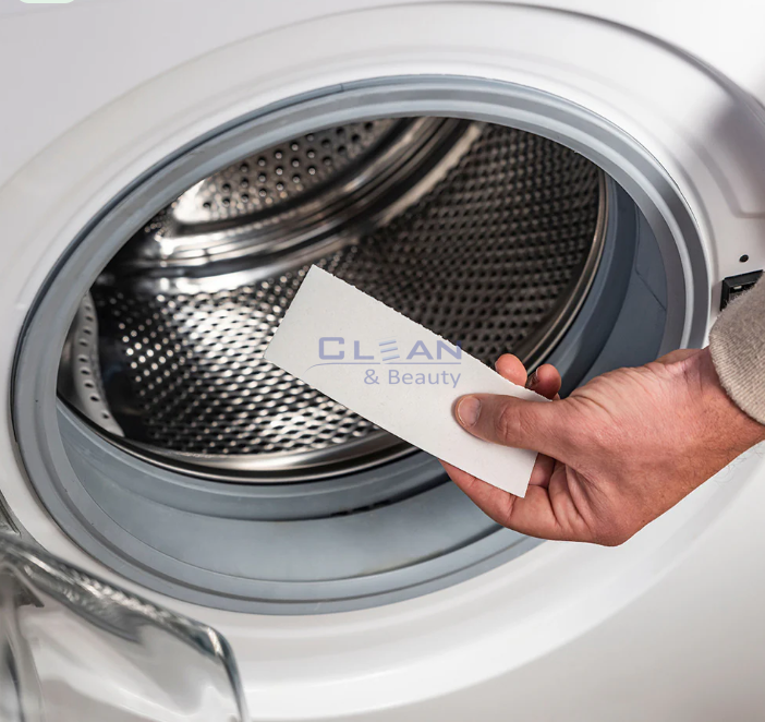 Поставете 1 лист директно в барабана на пералнята преди дрехите. За по-голямо количество пране или силно замърсяване използвайте 2 листа.